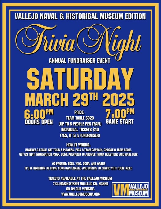 DONATE NOW! The Vallejo Naval & Historical Museum is a 501(c)3 non-profit organ-ization. All donations are tax-deductible to the full extent allowed by law. Thank you! Tax ID# 23-7441288